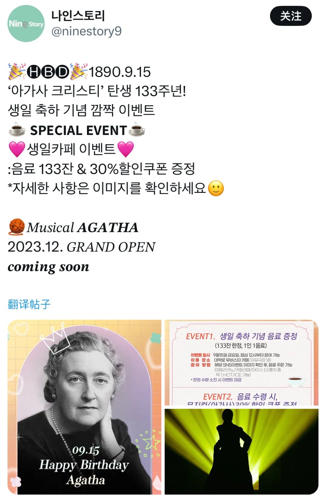 预告阿加莎生咖活动|来源:X