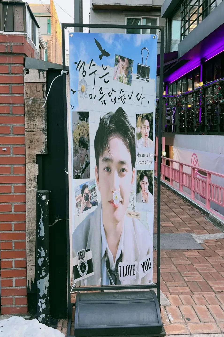 把注意力转移到这个文化发源地,现在走在韩国弘大街上,各种应援易拉宝的生咖店随处可见。,数量甚至超过了传统咖啡馆的外摆。
