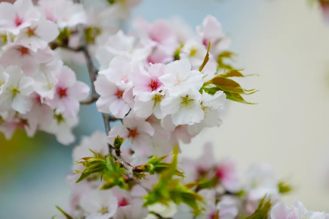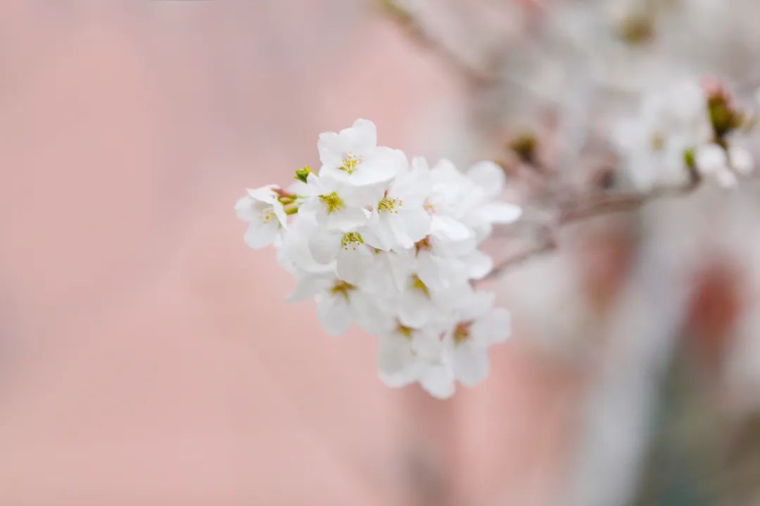 仔细研究樱花,五片花瓣被嫩黄的雄蕊包围着,仿佛守护着一颗珍贵的珍珠。花瓣柔软如纱,在阳光的照耀下微微发光,仿佛每一片都蕴含着春天的精灵。