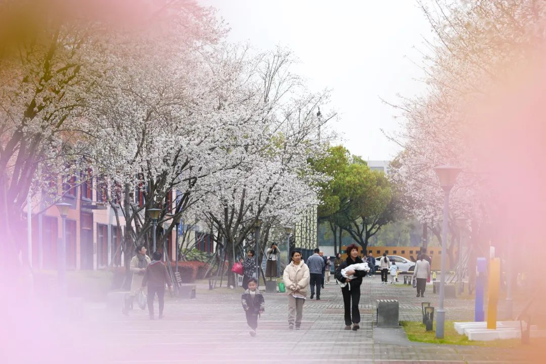 椒江东环大道上,有一个充满活力和浪漫的地方。 —— 跨境电子商务产业园。当春天的脚步轻盈地走进这里,一场樱花盛宴悄然拉开帷幕,成为市民打卡的好地方。
