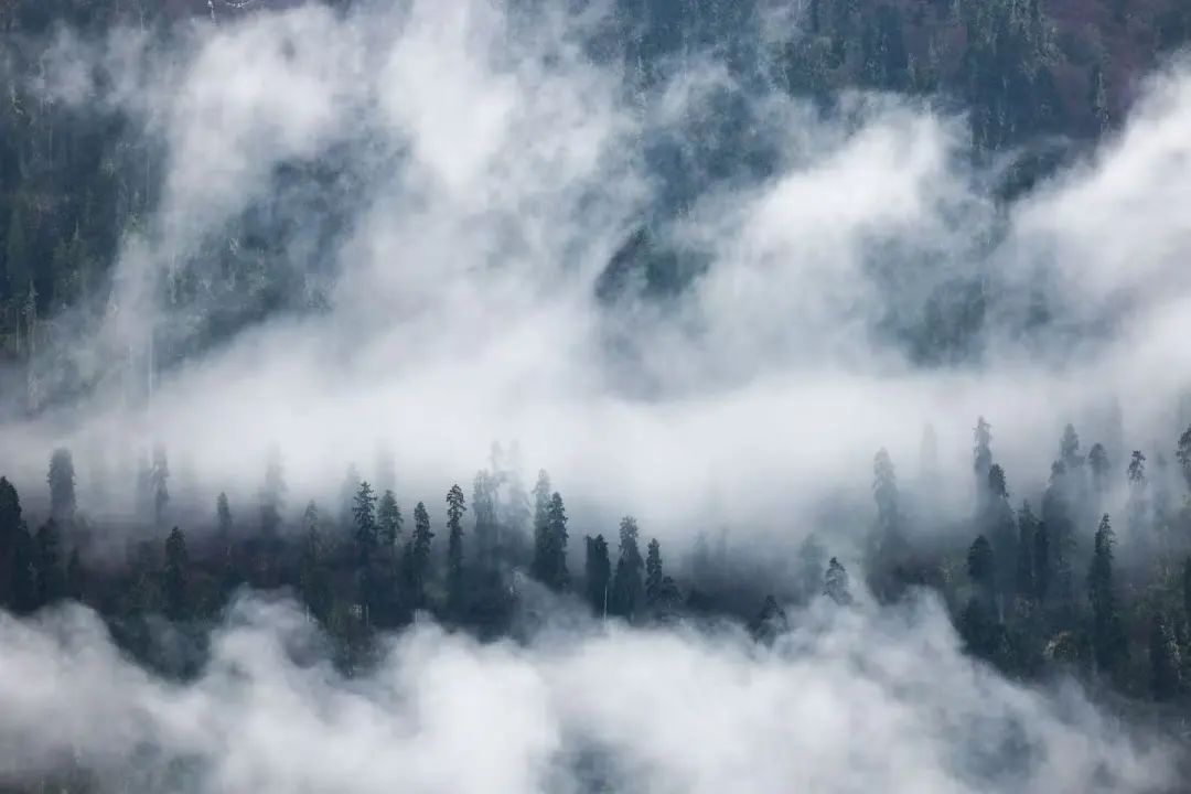 墨脱的云雾隐藏在远处,绿浪的尽头有未见的景色。
