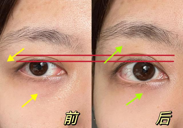 以前眼角是掉下来的,以后至少眼角是平的,上眼睑和双眼皮的区别也很大。