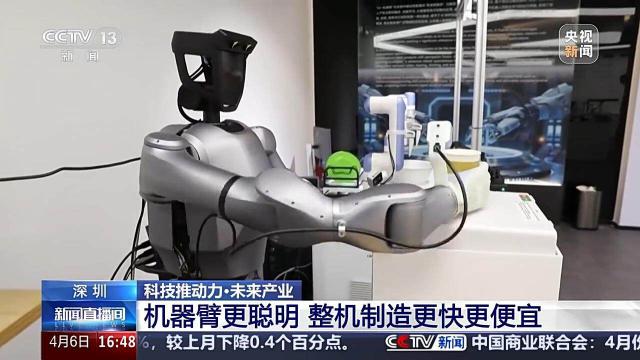 深圳以智能产业为中心,关键部件的创新与优化正在加快。记者来到深圳的一家合作机器人制造企业。他们生产以机器臂为代表的合作机器人,在全球出货量累计超过 80000 台湾,占出口业第一。一进公司展厅,一个全新升级的服务机器人就为我们展示了一套完整的迎宾工作,泡茶递水,展示了机械臂精确控制与智能的融合。另一间实验室里,记者还亲自体验了与机器人一起修理机器人。