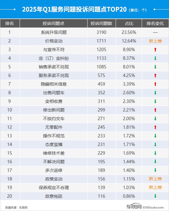 从服务问题投诉点比例的变化可以看出,销售问题已经占据了绝对的“ C “位”,成为近期客户抱怨最多的服务问题,占比较比较。 2024 年四季度增长近 3.5 %。投诉问题集中在“价格波动”和“与宣传不一致”上。另外,服务流程不完善的投诉故障数量也保持着持续增长的势头,环比增长 “系统更新问题”是19.4%的罪魁祸首。