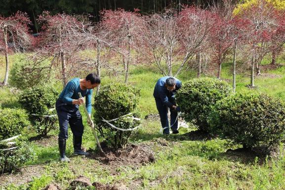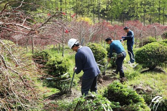 “日常护理基本上需要6到7个人。随着清明节的到来,买苗的人越来越多,最忙的时候每天挖8万棵苗,需要20多人。”童庭亮说。