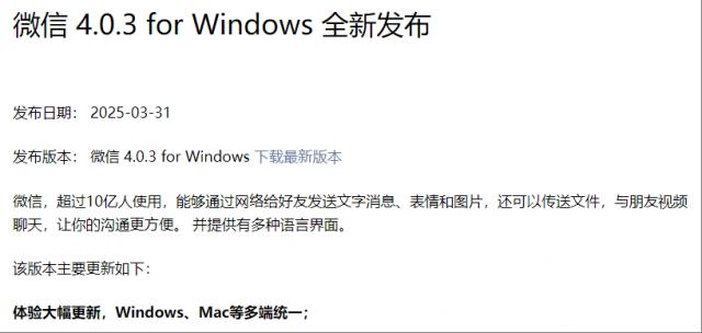 根据“微信”官网消息,最近,微信在多个平台上推出了新版本。据悉,这次感觉大幅更新,Windows、Mac 等待多端统一。