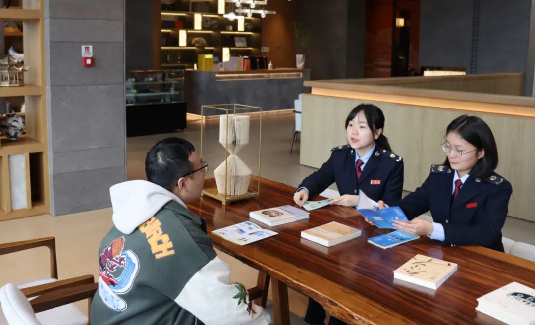 在贵州安顺,镇宁布依族苗族自治县税务局青年干部深入企业进行纳税指导,讲解适用税收优惠政策的注意事项,引导企业合规经营。