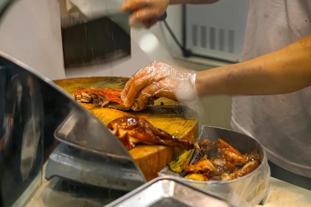 鹅不热,不要;皮不脆,不试;肉不嫩,不吃;不进味,不尝;没有鹅汁,不碰。一只只能烧鹅,切好后还是要骨肉相连,醇香酥脆。