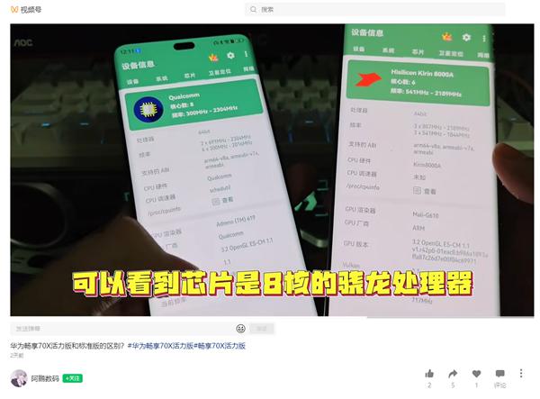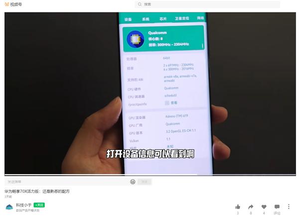 据第三方软件识别显示,华为享受 70X 活力版配有骁龙芯片,不支持。 5G。