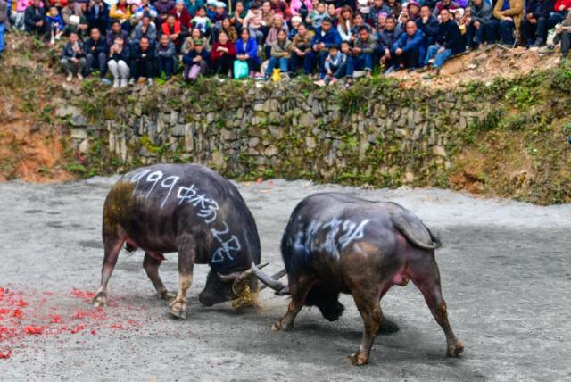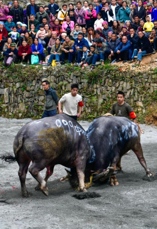 △ 4 月 6 日本,人们在贵州省锦屏县固本乡东庄村观看民间斗牛。新华社记者 杨文斌 摄