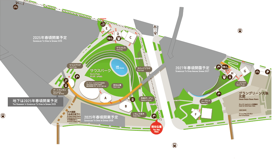 UMEKITA 梅田枢纽GrandDand是梅北公园。 Front Osaka的二期项目,其中,南区Grand Green Osaka 已在2025年初出现,走进去看一看,这里似乎是前期公园商业智慧的集合升级。