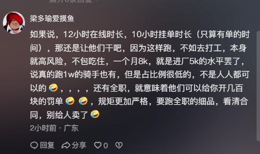 除了被暗示更换为“单更多”的区域跑单,以上案例也直观体现了骑手。原来,在午高峰结束时,他们可以跑300多元。全职后可以完全跑完午高峰,上线10个小时,不到300元,但收入比以前打折了。经过这个计算,一个月后,虽然交了五险一金,但拿到的钱只有之前的一半多。