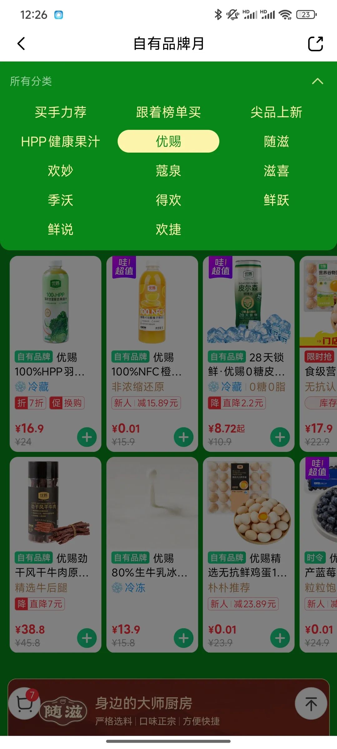 首先是自主品牌的“硬折扣”战略,朴朴自有十多个品牌通过直接连接工厂,去掉中间商,实现价格优势。2024年,自主品牌超过750个SKU,销售目标为50亿元,占总销售额的15%-20%,涵盖食品、日用品等八大类。这一山姆式的自主品牌战略,成为利润增长的核心引擎。