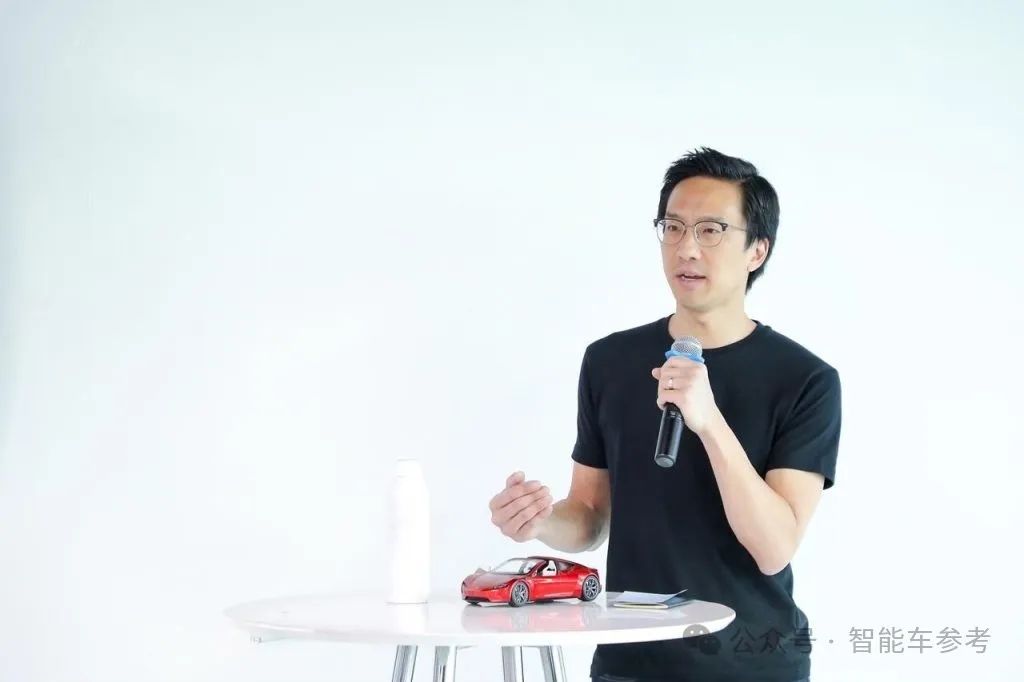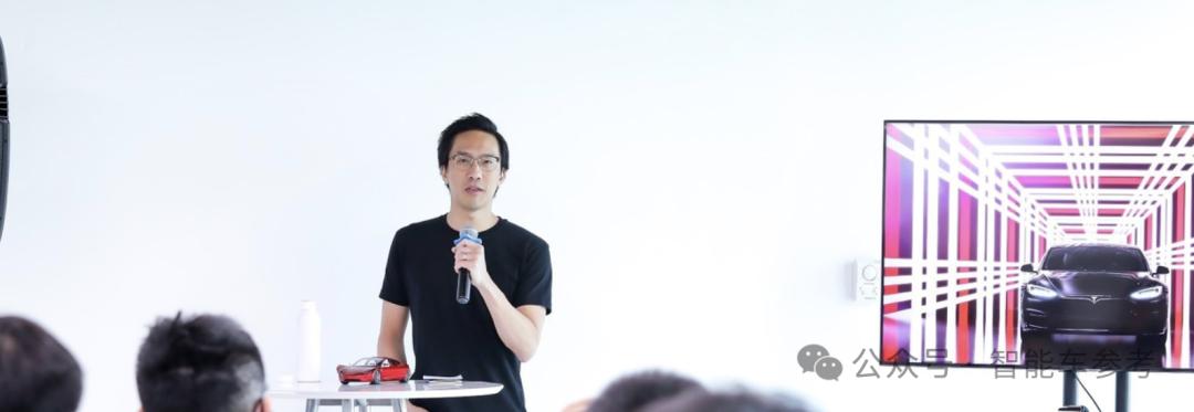 2023年特斯拉投资人日,他在特斯拉工作了12年,曾与马斯克一起亮相,这是当年台上罕见的华裔面孔。,与马斯克相隔两位高管。
