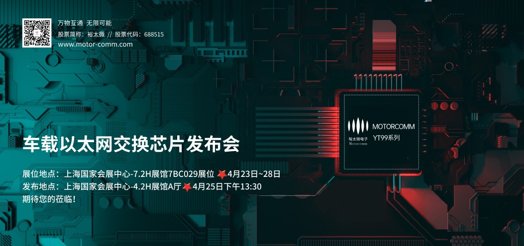 2025年上海国际车展将于4月23日在上海国家会展中心拉开帷幕。据悉,国内以太网芯片供应商裕太微电子将首次在本次车展上正式发布其车载以太网交换芯片YT99系列新产品,发布会引起了业界的关注。