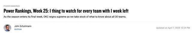 这个星期令人惊讶的团队:3 胜 1 失败的火箭队,连击败雷霆和勇士队,他们终于重返季后赛;令人失望的队伍:0 胜 4 负面的掘金,约基奇竭尽全力看起来却要掉进附加赛区。