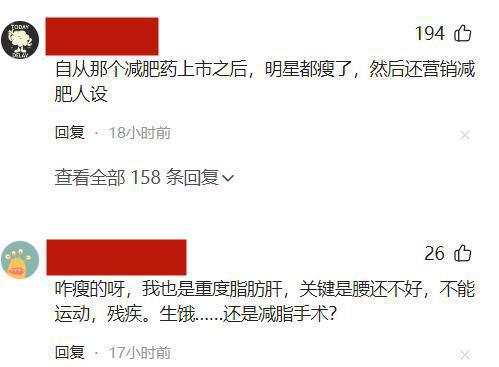 也有网友表示,自打某一瘦身产品上市以来,许多女明星都瘦了,还营销减肥人设。