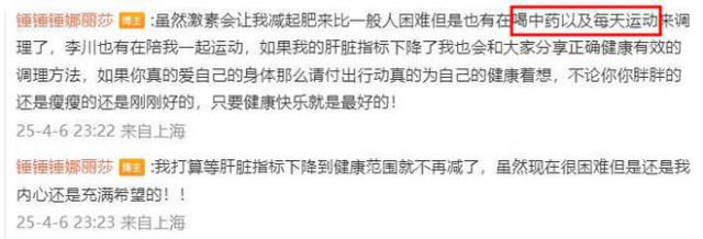 锤娜丽莎患有严重脂肪肝,减肥成功70斤?当事人回应过来,不要上当受骗。