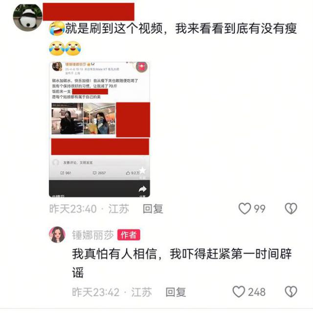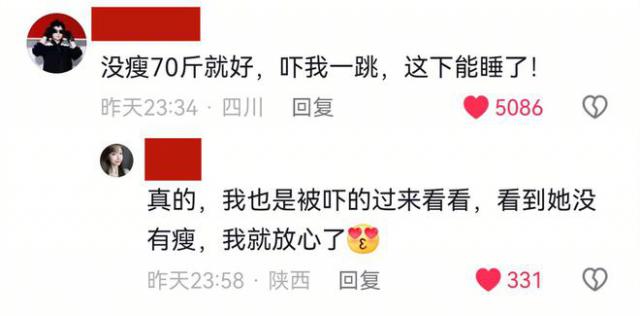 锤娜丽莎辟谣后,不少女网友笑着说:“不瘦。 70 很好,吓了我一跳,现在可以睡觉了。”