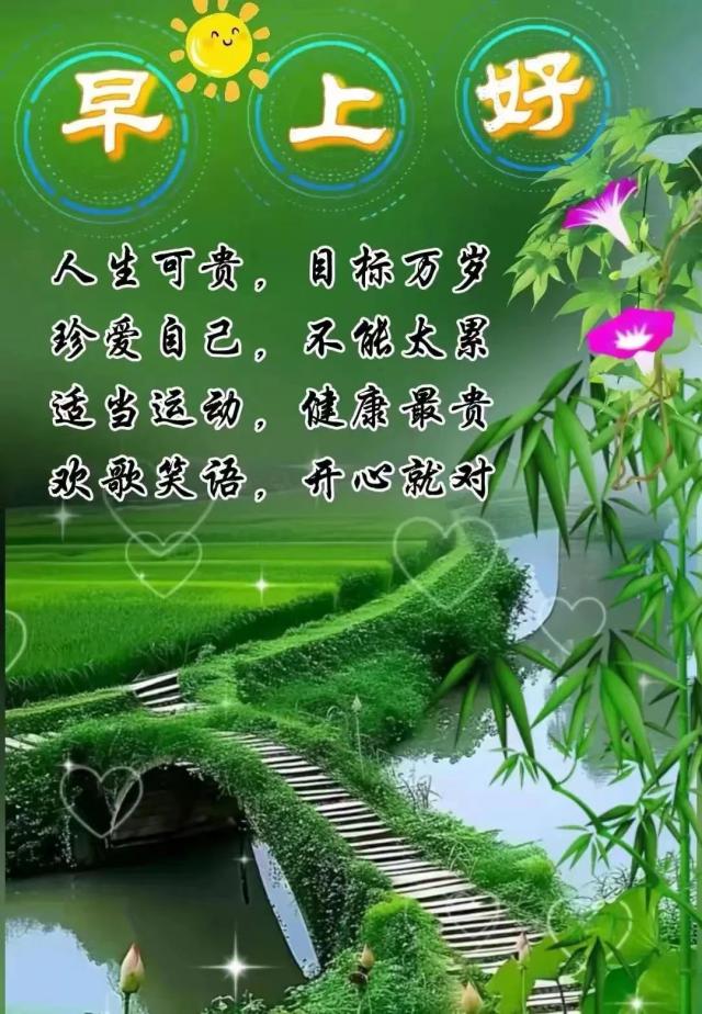 每天早上,都有美好的祝愿,沐浴着温暖的阳光,滋润着我们的心灵,保持健康,享受着美好的生活。让我们迎接新的一天,用真诚的心情说早上好!