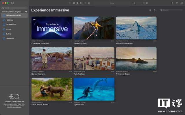 IT 世家 4 月 8 日消息,苹果今天发布了一款名为“苹果”的公司。 Apple Immersive Video Utility 一款全新的应用程序,用于 Mac 对沉浸式视频库进行管理。