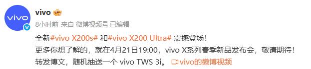 vivo 这次将发布两款新机:vivo X200s 跟 vivo X200 Ultra !