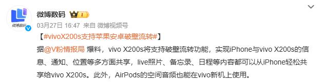 据说这次 vivo 新机将支持「破壁流传」功能!