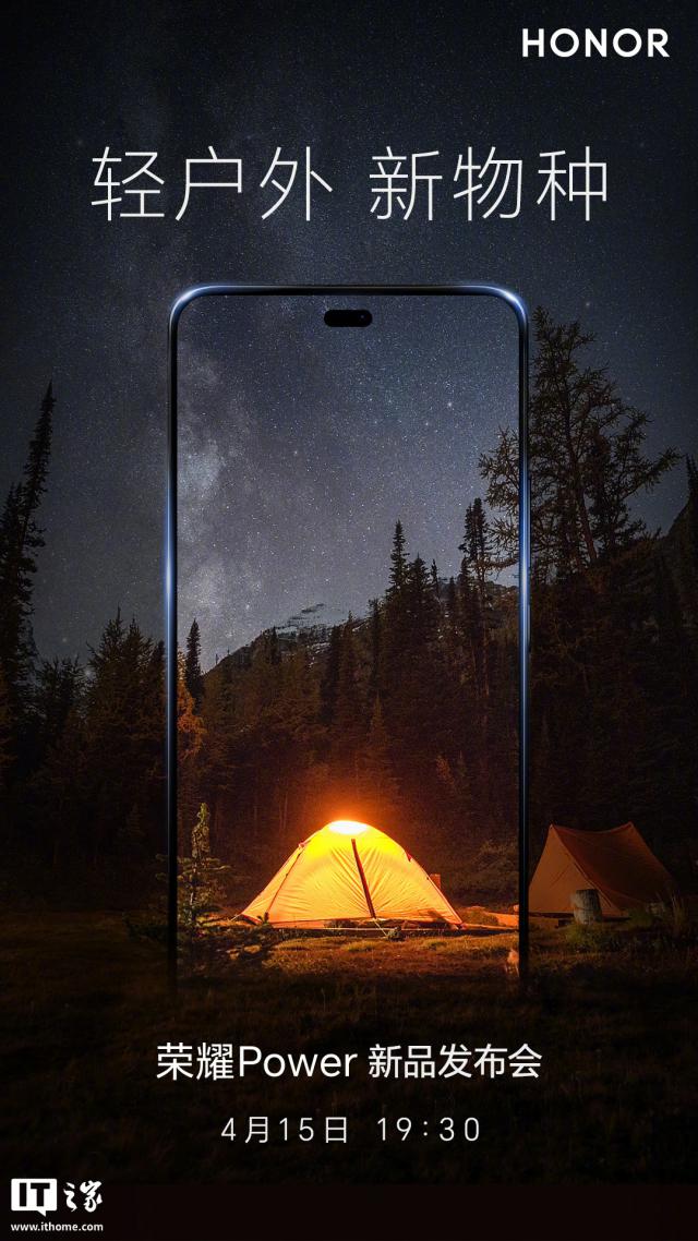 IT 世家 4 月 7 日新闻,荣耀手机官微今日宣布,定位“轻户外手机”的新产品荣誉 Power 将在 4 月 15 日 19 时 30 分正式发布。