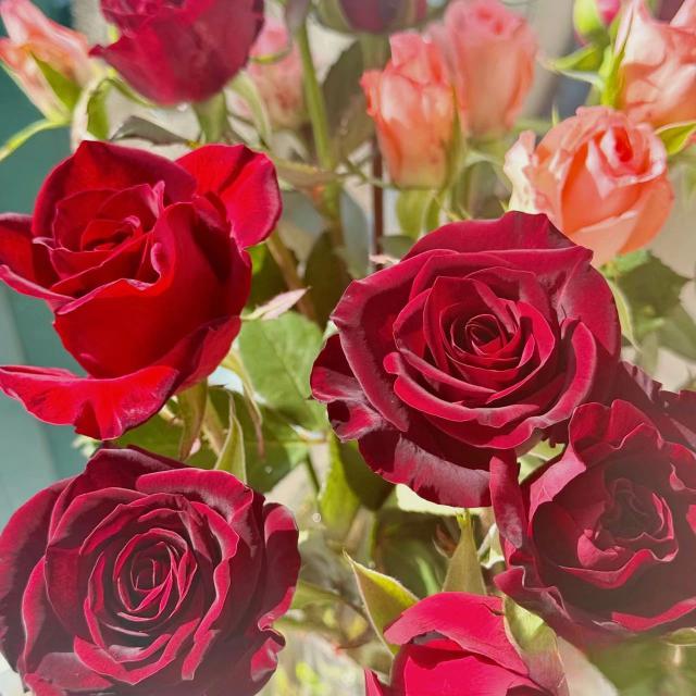 篱笆墙内,春风轻轻摇曳的各种玫瑰——胭脂红的“法兰西”开着层叠的裙子。香槟色的“桃雪山”有着优美的光泽,绿叶间若隐若现的淡粉色的“艾莎”。整个花田就像一个翻转的调色板,温柔的色彩在阳光下流淌。