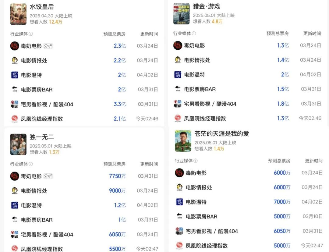 在这种背景下,清明档的失败无疑会进一步放大市场的困境,让即将到来的五一档更加紧张。