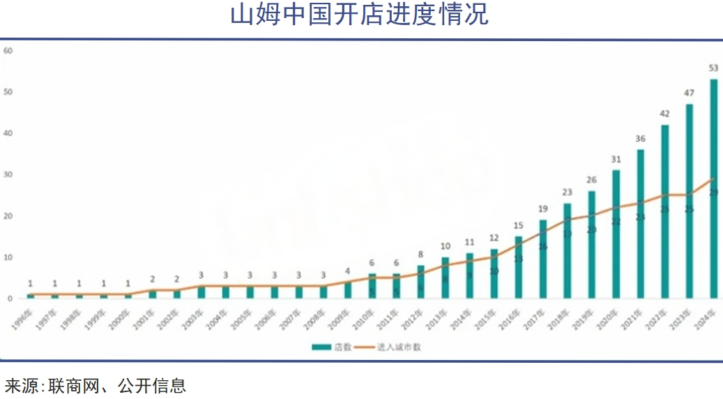根据公司未来的开业节奏,山姆预计未来三年每年将开设6-7家新店。目前,已有22家门店新建和准备开业。到2025年底,中国的门店数量有望超过60家。。