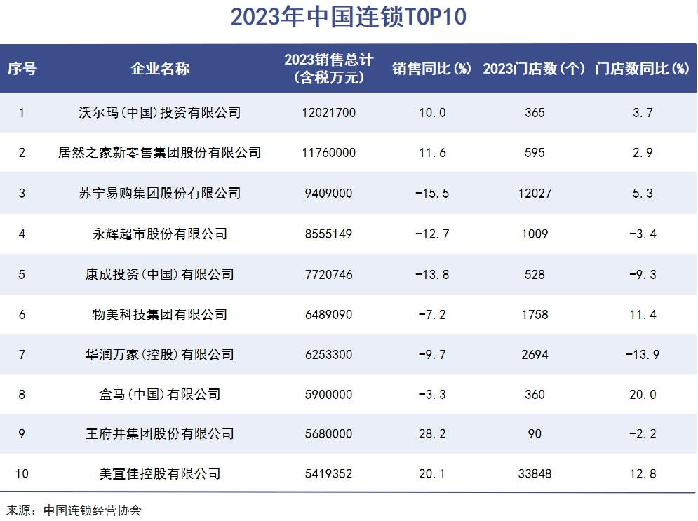 据中国连锁经营协会统计,传统零售龙头永辉、大润发、物美、华润万家在2023年连锁百强中销量大幅下滑。另一方面,由山姆支撑的沃尔玛、胖东来、Costco中国、信誉楼百贸等特色零售商逆势增长。