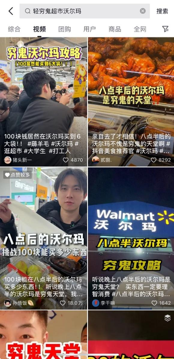 现在,短片平台上充斥着各式各样的沃尔玛撸羊毛攻略,up主甚至称沃尔玛为“穷鬼天堂”,特别是晚上八点以后。
