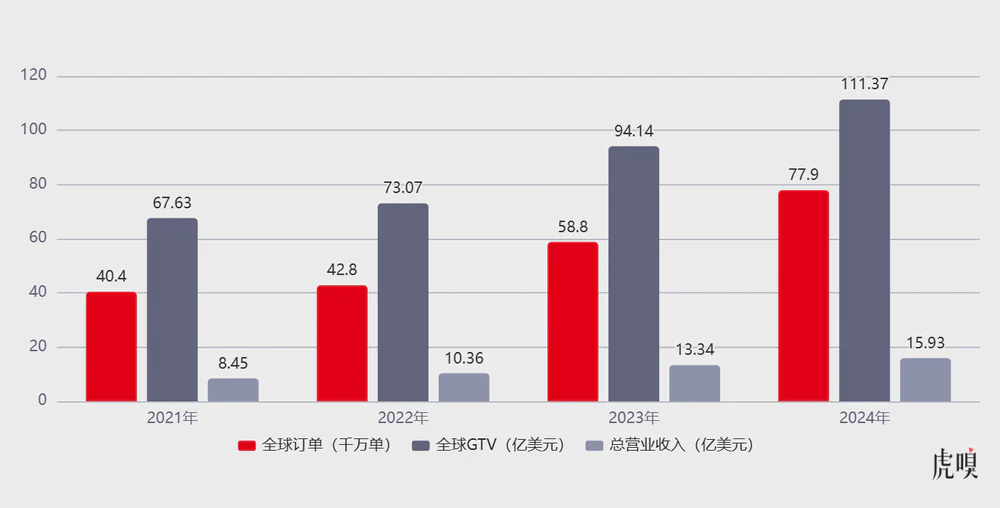 根据招股书,我们可以看到货拉拉的最新成绩单:2024年,货拉拉全年营业收入达到15.93亿美元,同比增长19.39%;全年订单超过7.79亿,全球交易总额为111.37亿美元,同比增长18.3%。