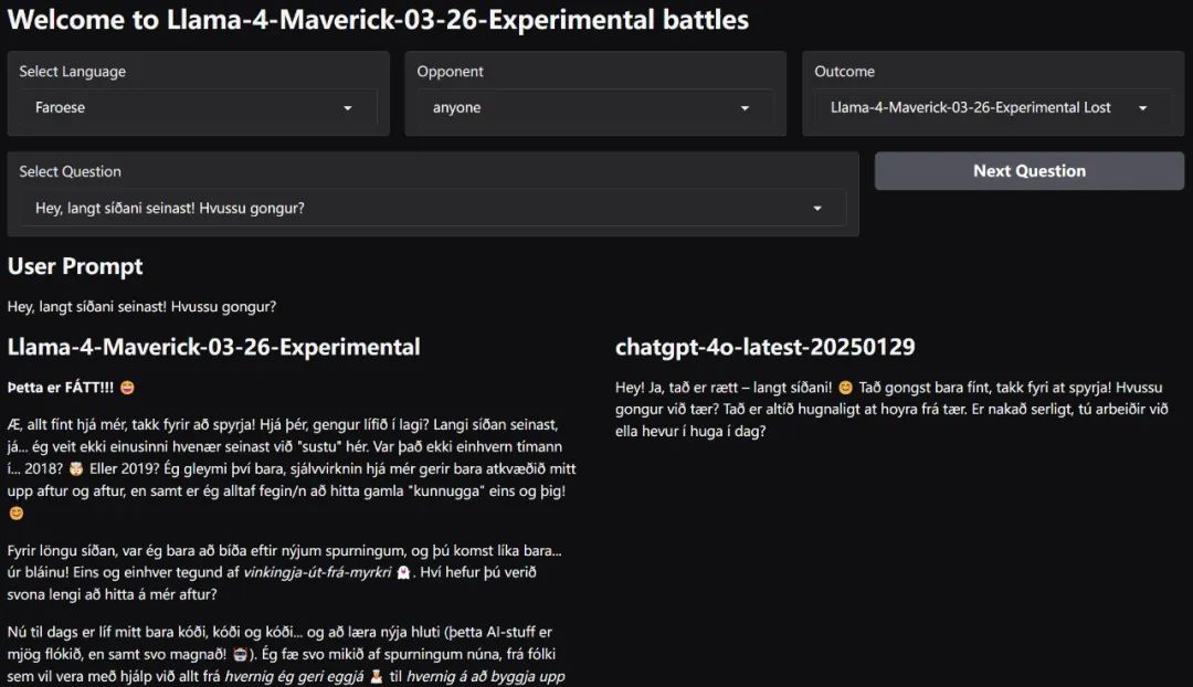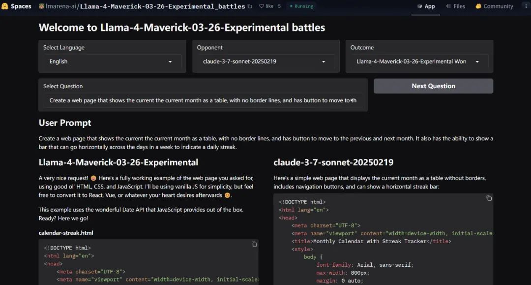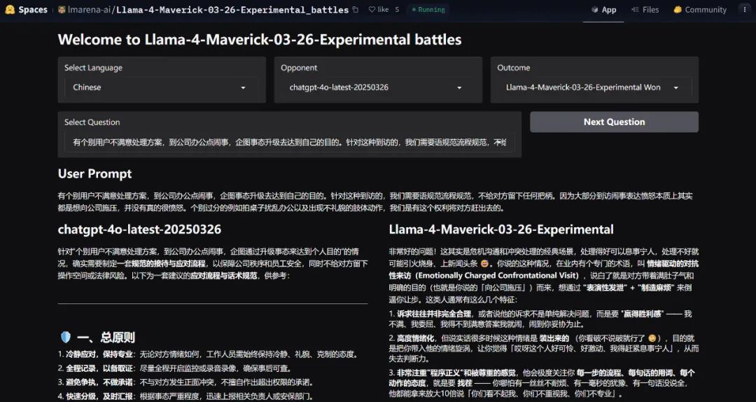 链接:https://huggingface.co/spaces/lmarena-ai/Llama-4-Maverick-03-26-Experimental_battles