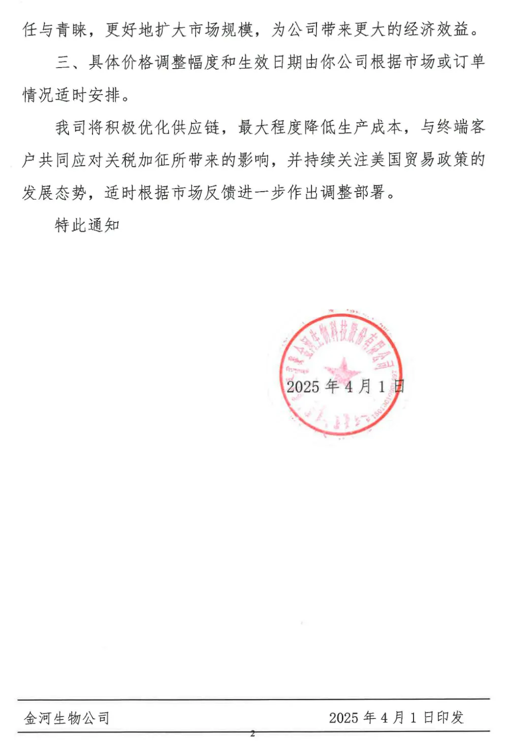 在特朗普执意大搞关税战的大背景下,金河生物在美国市场涨价,就成了情绪的引爆点。