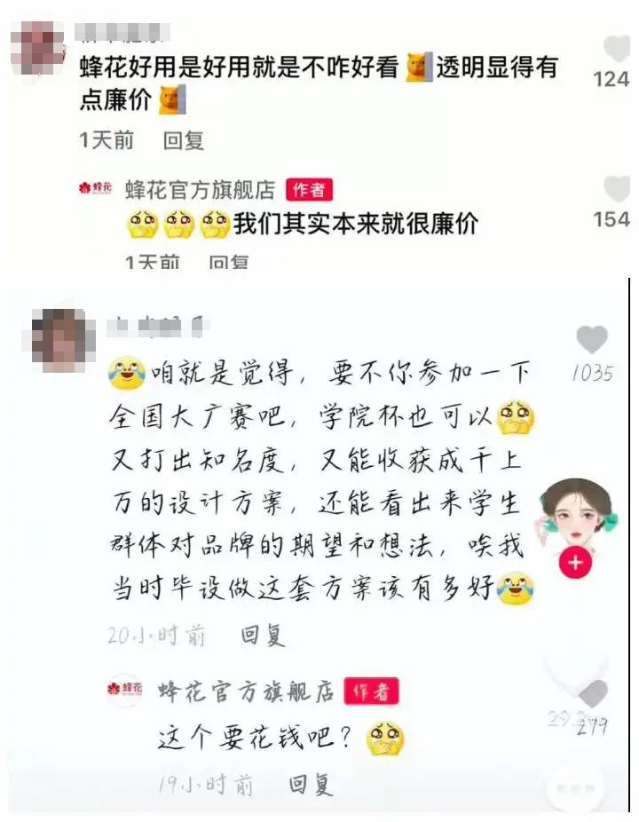 这两年,在短视频平台上,经常能看到那些打着怀旧情怀的老国货卖惨的场面。比如蜂花,回复网友时就主打一个“句句不谈穷,句句都是穷”: