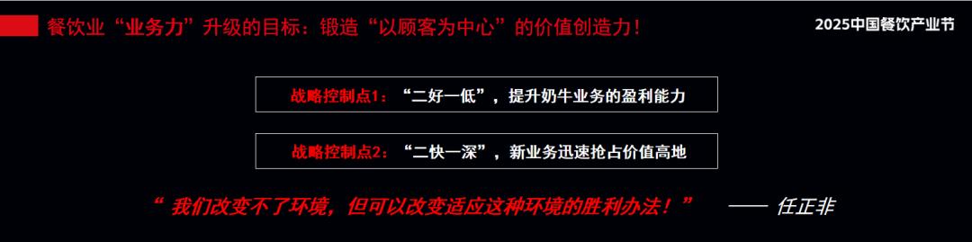 二是倒逼我们变革。过去大部分餐饮老板都是靠运气赚钱,但这条路现在已经走不通了。任正非曾说过:“过去的成功,不能成为未来成功正确的向导”。餐企需要自我蜕变,革自己的命才能活下去。