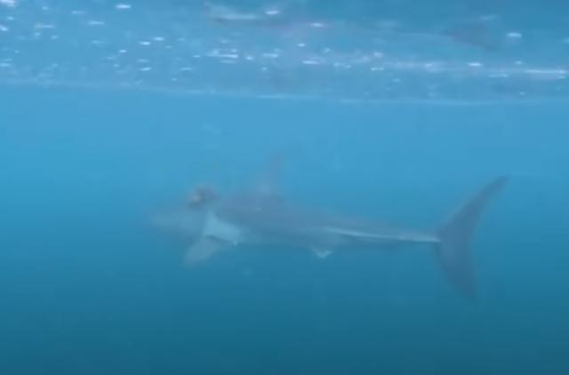 研究人员偶然发现,在新西兰海岸周围,一条鲨鱼头上有一个奇怪的橙色物体。她们怀疑鲨鱼是受伤了,还是被浮标粘住了,于是使用了无人机和水下摄像机,试图弄清楚到底是怎么回事。