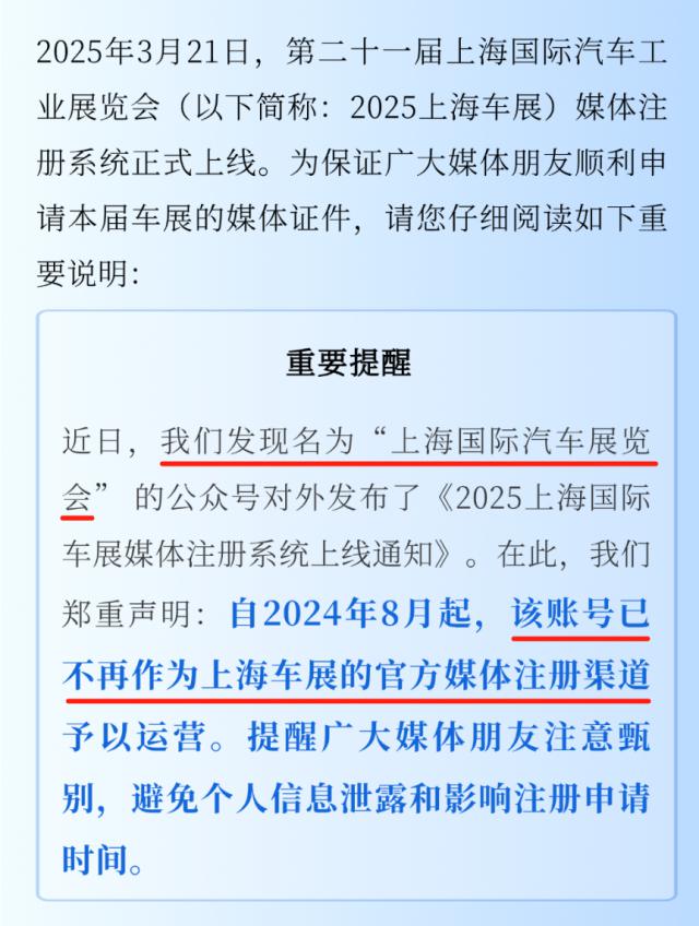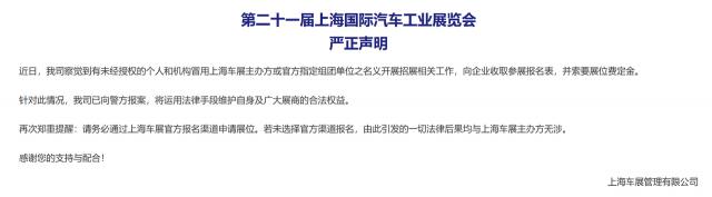 首先,上海贸促会发表声明,说汽车分会的小号不能再用了,希望大家不要弄错。