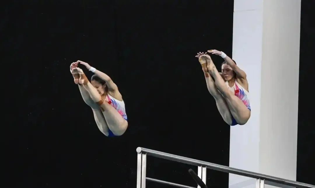 比赛期间,掌敏洁与卢为配合默契,展现出极高的竞技水平。在第一轮比赛中,他们选择了2.0难度系数的201B(向后翻滚半周屈体)动作,并以稳定的表现成功获得52.8分。第二轮,两人再一次精确诠释了难度系数2.0的301B(反身翻滚半周屈体)动作,得了51分。进入第三跳,难度升级为3.0的107B(向前翻滚三周半弯曲),凭借出色的空气姿势和入水效果,他们得到了72.9分。四是面对难度系数高达3.2的407C(向内翻滚三周半抱膝)动作,掌敏洁和卢以87.36分的优异成绩进一步扩大了领先优势。最后一跳,他们以3.2难度系数的5253B(翻滚两周半,转身一周半)完美结束,得到83.52分。掌敏洁和卢为凭借5跳总共347.58分的出色表现,以近31分的巨大优势赢得了这个项目的金牌,展现了强大的实力。