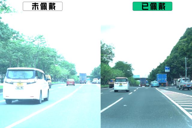 在我们戴上驾驶眼镜之后,强光被隔绝,即使出了隧道,遇到紧急情况也能及时做出反应。
