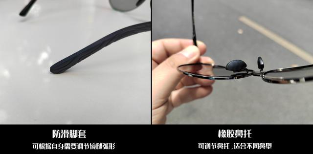 耳鼻托均采用防滑材料,有效防止墨镜滑落。即便是夏季出汗,鼻出油,也不容易滑倒。。