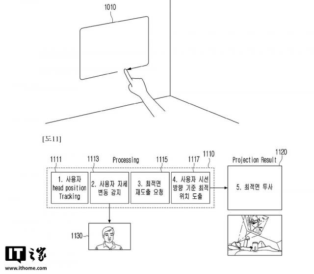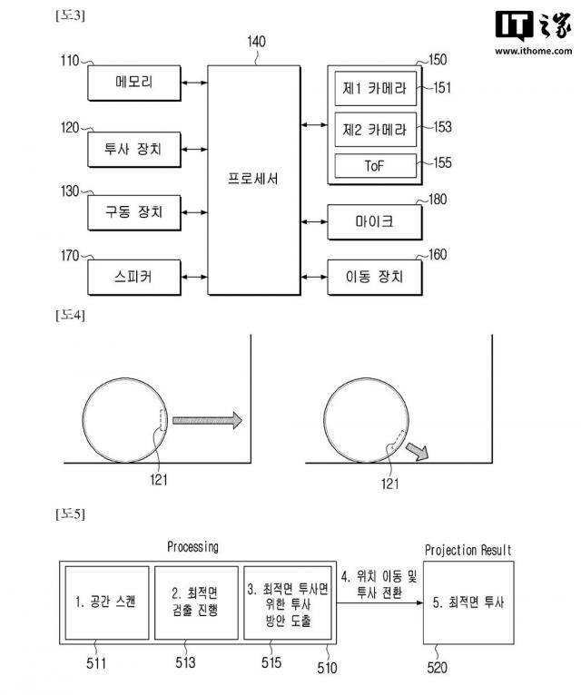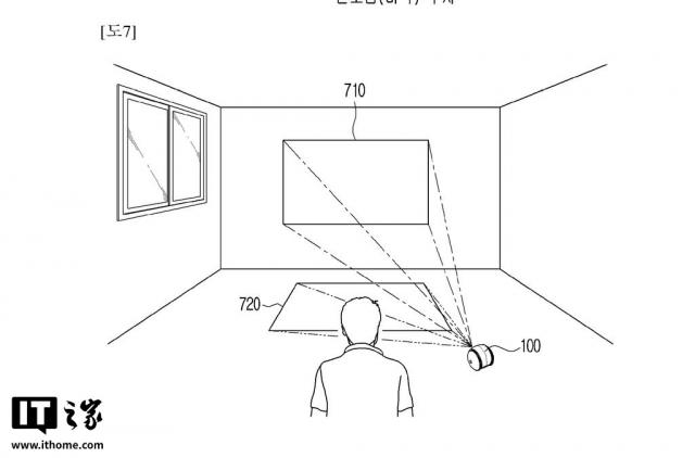 但是在最新批准的专利(WO2025071029)中,详细描述了 Ballie 投影技术。该机器人配备了投影装置和驱动装置,可以根据环境调节投影方向。它还可以通过摄像机识别周围的空间,确定墙壁或地板等多个投影区域。