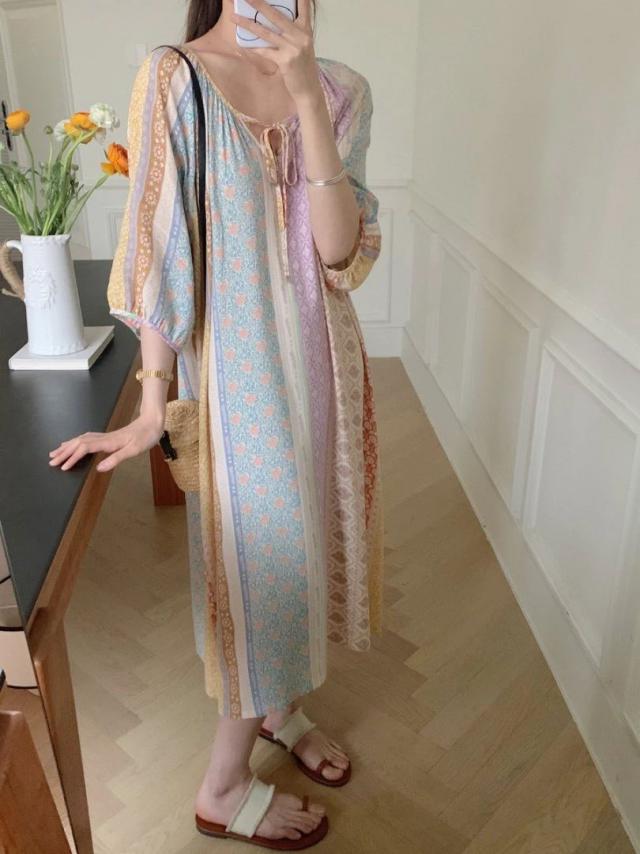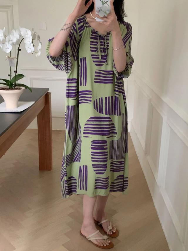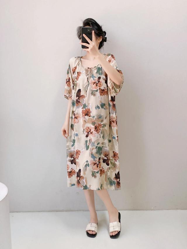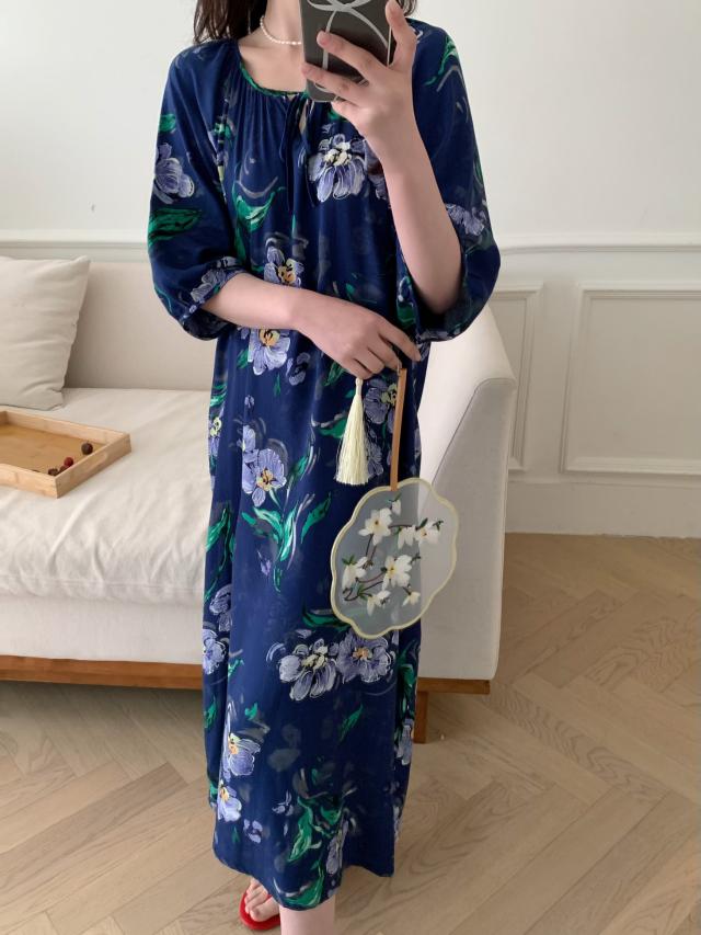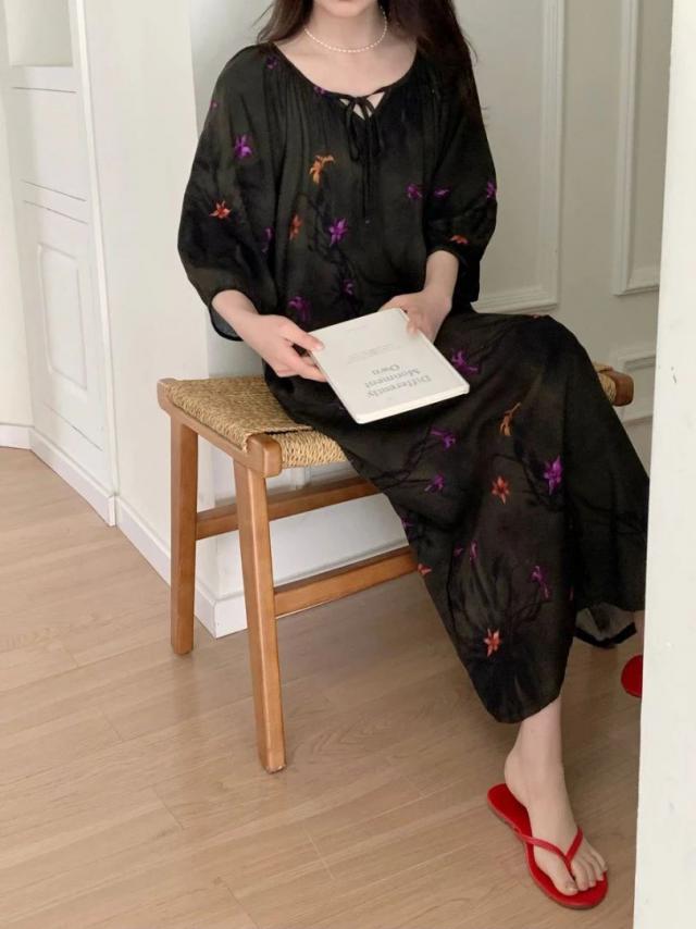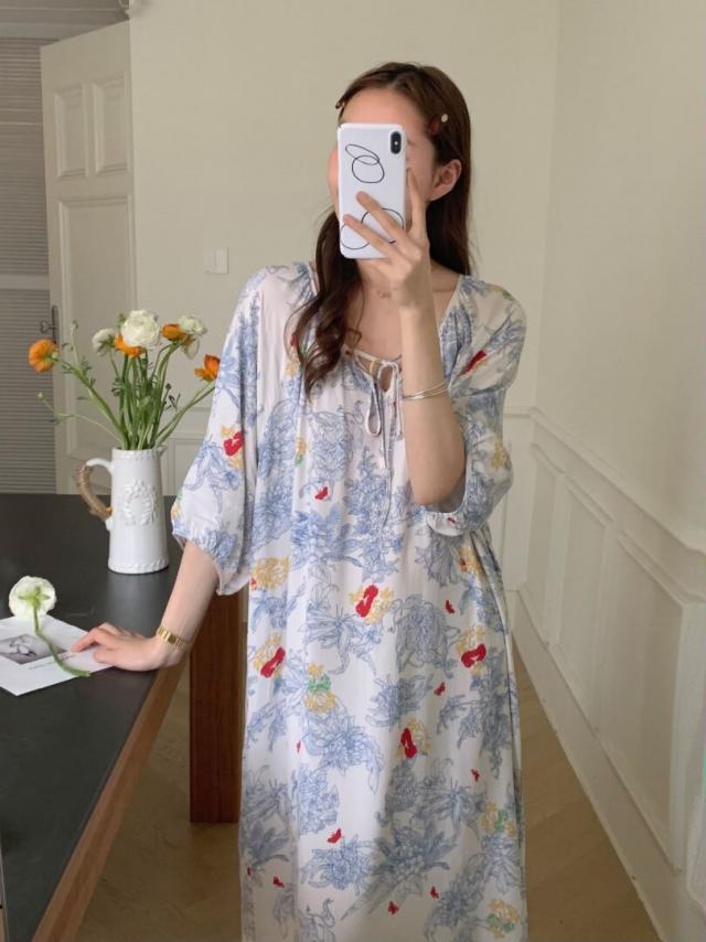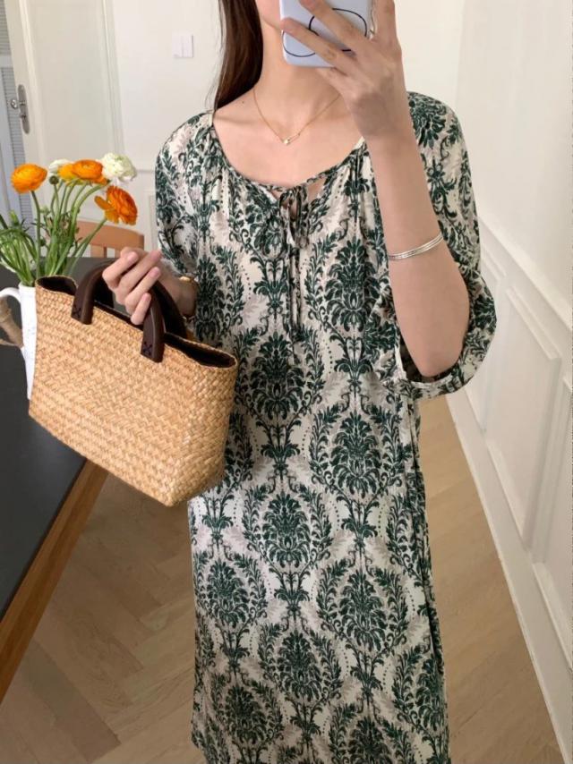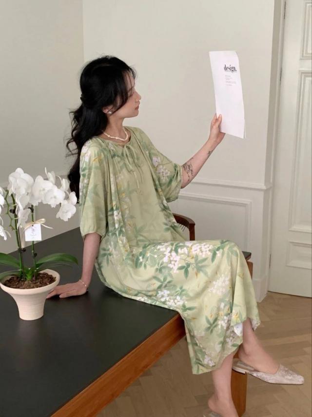 穿「新中式棉质印花裙」的夏天