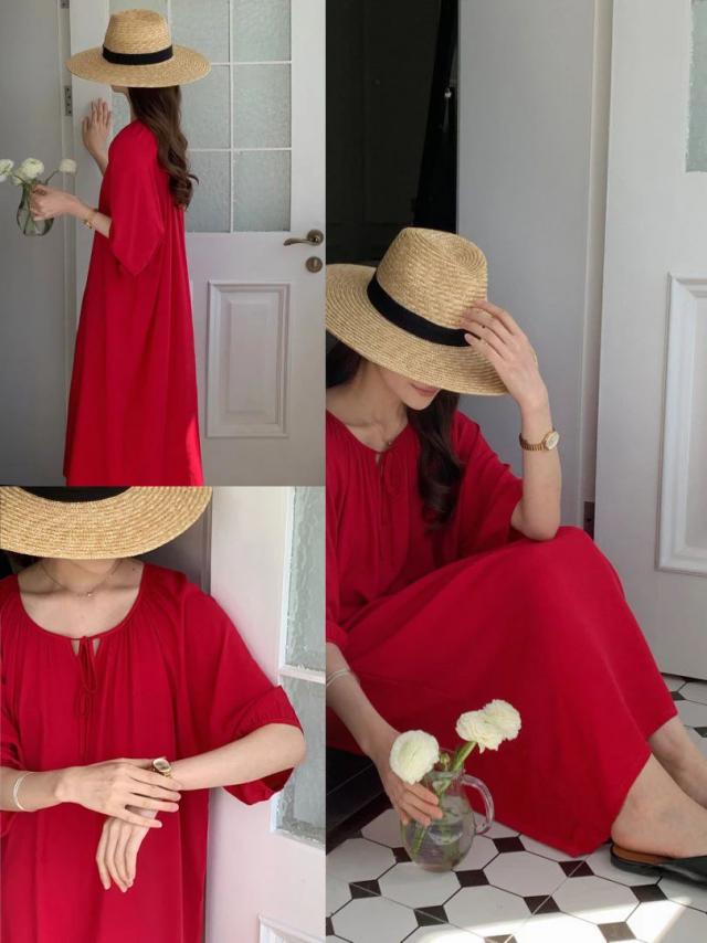 这种棉裙特别适合夏天穿,但是我们调整了一下款式,也可以穿出去啦!