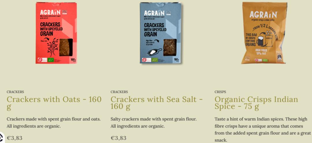 用啤酒糟生产的丹麦Agrian产品主要包括饼干、薯条和面粉。agrainproducts.com