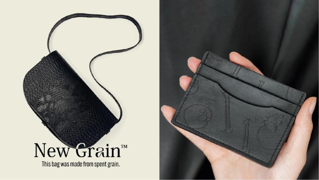 Arda生物材料公司用啤酒糟做的小挎包和卡包。.bio