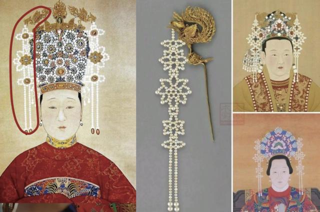 先说结论。这种饰品叫挑牌,一般由一串不同形状的珠结组成,两边对称一对佩戴,一般为皇后。 / 皇妃 / 只有命女才能穿,不同场合穿的冠和饰品也不一样。下垂的选择被称为“珠结",简而言之,就是用线把珠子穿成各种形状的结,作为装饰。