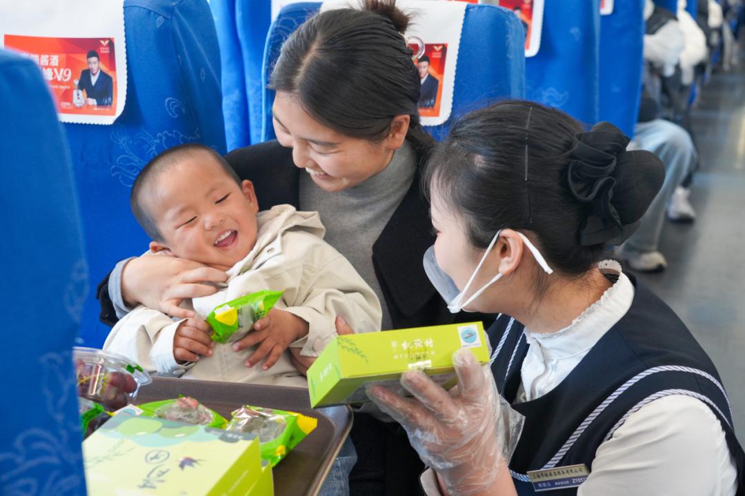除了传统的绿色团体,火车上还提供各种时令新鲜水果和特色小吃。优选智利西梅、云南蓝莓、新疆香梨等优质产区水果,提供“彩色果盘”组合和免费清洁服务;推出云蛋糕、少糖饼干、蟹香蛋黄锅巴等线上名人产品,丰富游客选择。